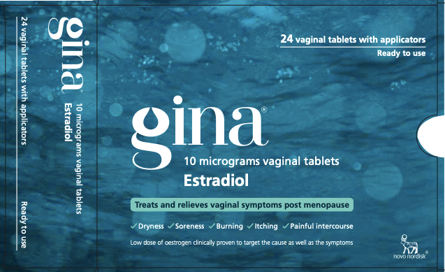 Gina belongs to a group of medicines called local vaginal Hormone Replacement Therapy (HRT). It is used to relieve menopausal symptoms in the vagina such as dryness or irritation. In medical terms this is known as ‘vaginal atrophy’. This happens when the vaginal wall becomes thinner, drier and less elastic and can cause symptoms in the vagina such as dryness, soreness or irritation, itching or burning sensation, and painful sexual intercourse. It is caused by a drop in the levels of oestrogen in your body which happens naturally after the menopause. How does Gina work Gina works by replacing the oestrogen which is normally produced in the ovaries of women. It is inserted into your vagina, so the hormone is released where it is needed. This may relieve discomfort in the vagina. Who can use Gina Gina is used to treat the symptoms of vaginal atrophy in postmenopausal women over 50 years and who have not had a period for at least 1 year.
