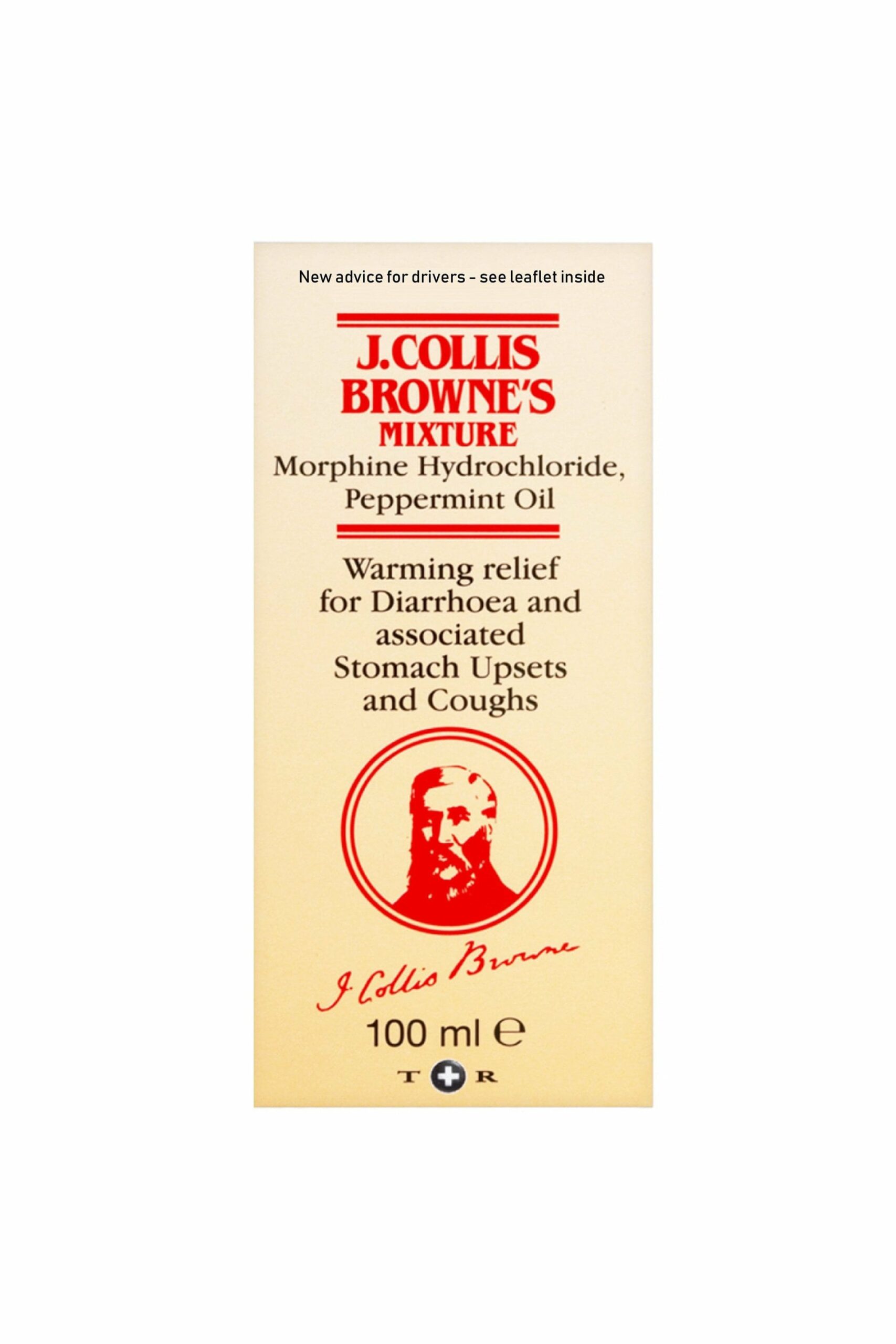 J Collis Browne’s Mixture relieves coughs and the symptoms of diarrhoea. J Collis Browne’s Mixture contains morphine which helps in order to calm and relieve the effects of diarrhoea and griping pains. There is also peppermint oil in J Collis Browne’s Mixture which helps to calm the stomach and relieves flatulence and griping. It is very important that you drink plenty of fluids to keep hydrated. J Collis Brownes Mixture J Collis Brownes Mixture should not be taken by those who have breathing problems, it should not be given to those under the age of 12 and you should avoid drinking alcohol when taking J Collis Brownes Mixture. Elderly and debilitated patients need to ask their GP on advice how to take J Collis Brownes Mixture as they may be advised to take a lower dose. Different doses needed dependent on which reason you are taking J Collis Brownes Mixture for, diarrhoea or coughing.J Collis Browne's Mixture 100ml