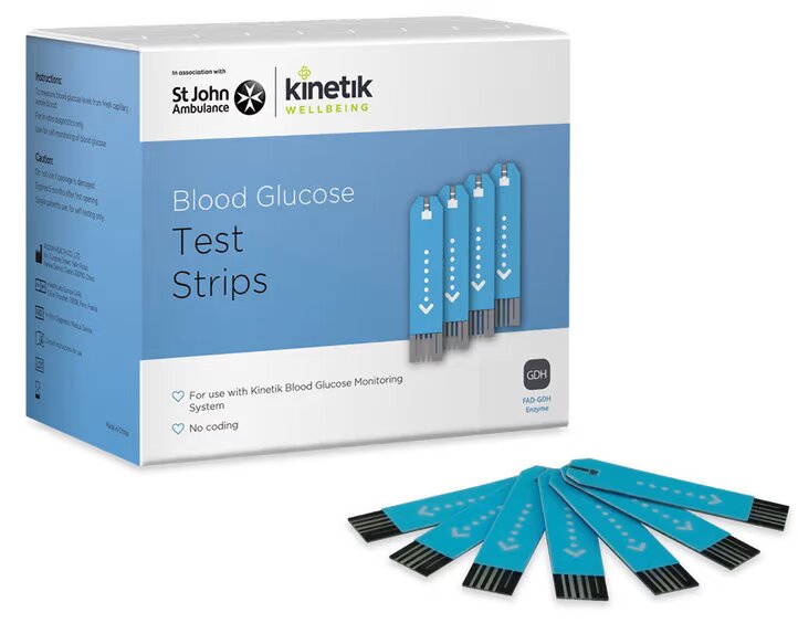 Depending on how many you purchase, Kinetik Blood Glucose Test Strips can last for months. Hygienic, sterile and easy to use, they also fit perfectly with the Kinetic Lancing Device. Kinetik is a British medical device company. Producing Kinetik Blood Glucose Test Strips and other diabetes related medical products to the highest standard. All of the Kinetik products meet the important requirements and accreditations associated with diabetes testing. Kinetik Blood Glucose Test Strips are made in association with St John Ambulance. Kinetik and St John ambulance share the same passion for empowering people to look after their health, from knowing how to tackle first aid emergency to safely, easily and accurately measuring blood glucose levels.